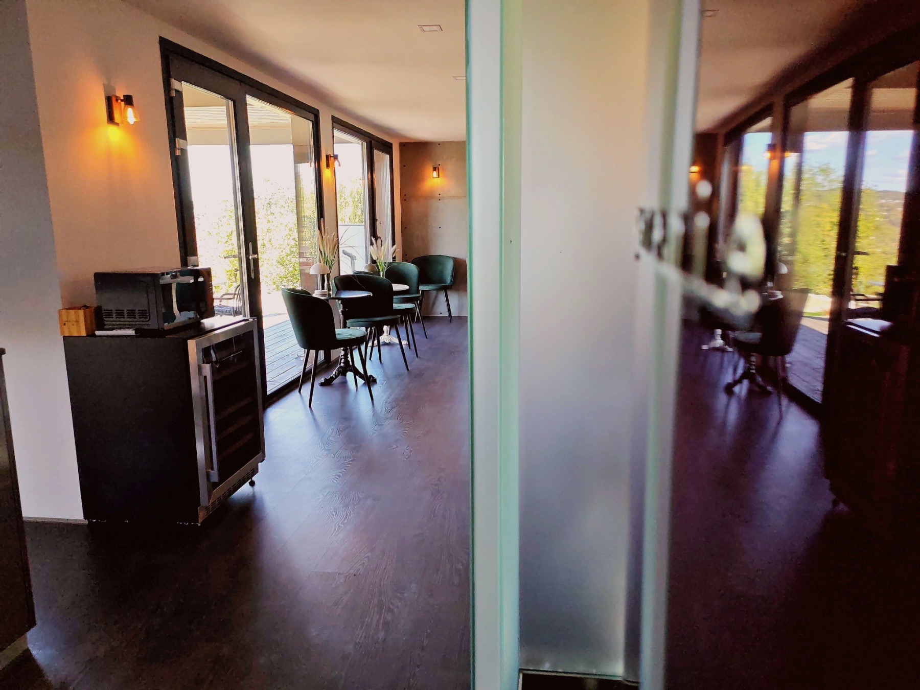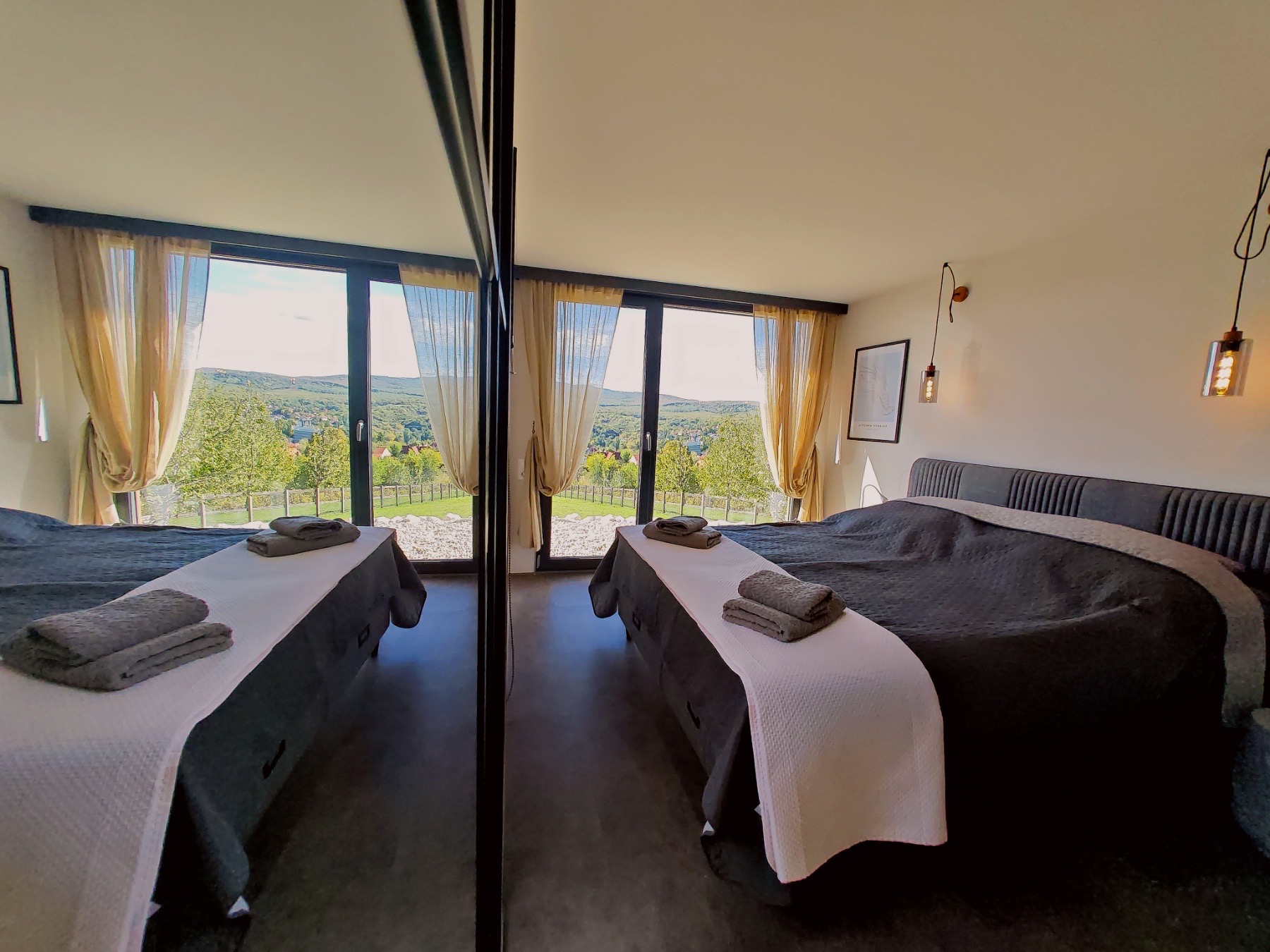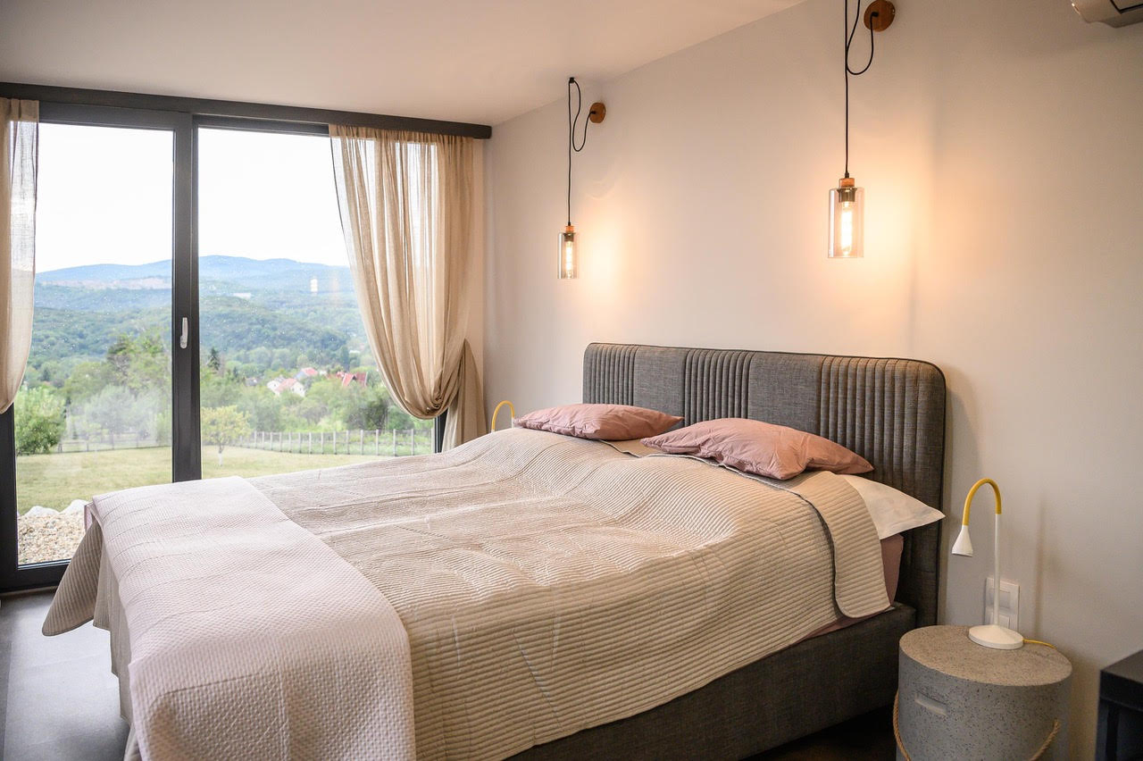 A szobák megfelelő hőmérsékletéről beépített légkondicionáló gondoskodik. A tökéletes kikapcsolódást a panoráma szauna, a hozzá tartozó pihenőszoba és a merülőmedence biztosítja. Vendégeink számára exkluzív kültéri pihenőrész is elérhető, amely ideális helyszínt nyújt a romantikus pillanatokhoz és baráti társaságok kikapcsolódásához.