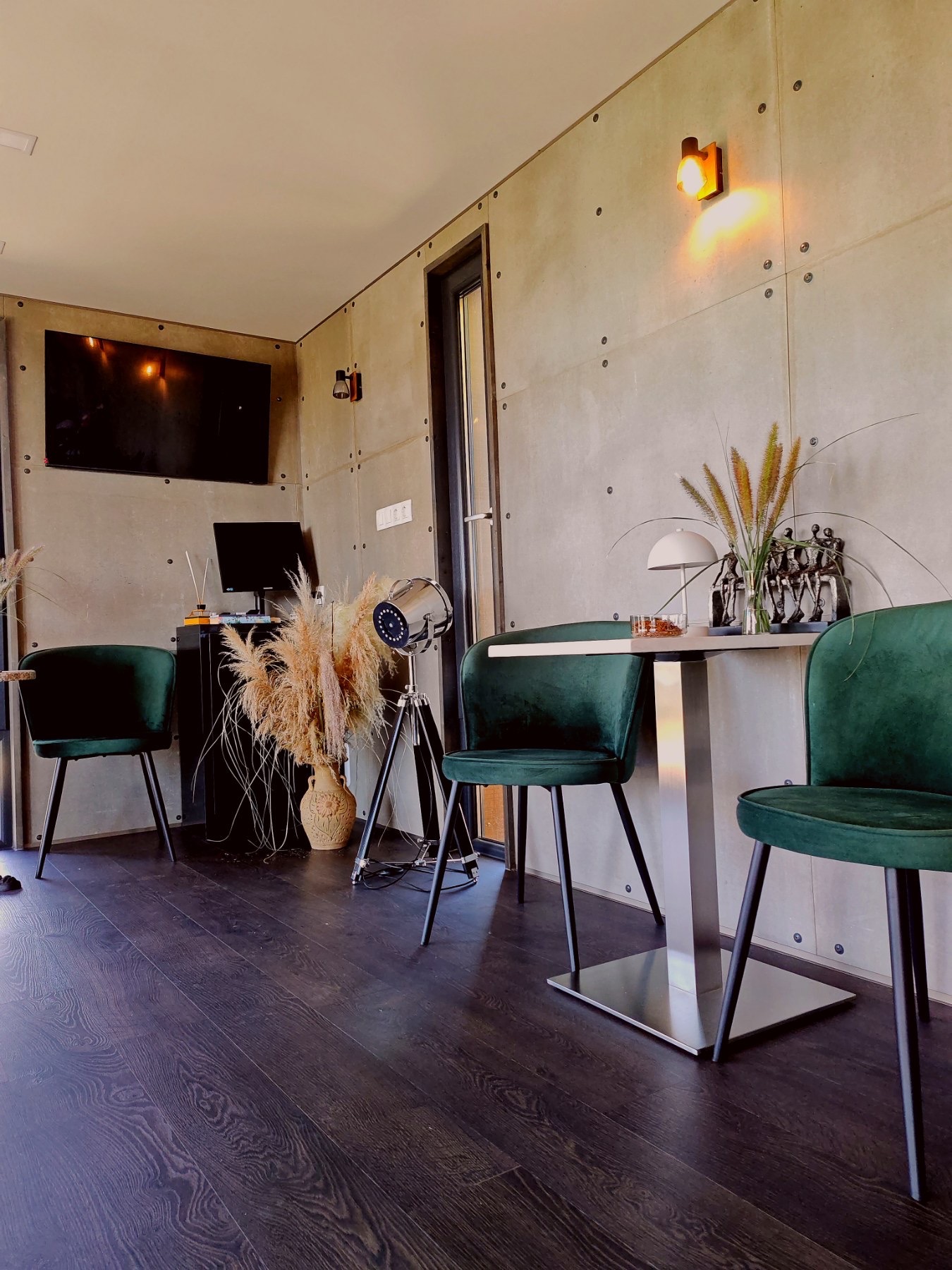 Vendégeinket modern, kétfős konténerházak várják, melyek mindegyike saját, teljesen felszerelt fürdőszobával rendelkezik, ahol törölközők és hajszárító is biztosított. A házakhoz tartozó napozóteraszok tökéletes helyszínt nyújtanak a lazításra, miközben ingyenes Wi-Fi és díjmentes magánparkoló áll rendelkezésre.